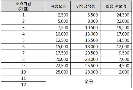 ③ 서비스 소요기간 환불표 기준을 적용하여 환불 할 경우 서비스 종료일은 환불 접수일 기준으로 해당 월말일로 지정합니다.