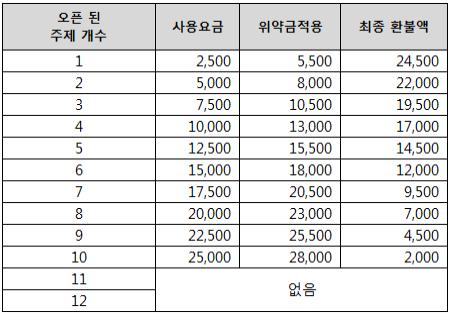 별첨 #2 오픈 된 주제 개수에 따른 환불표